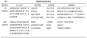 综上所述,个人特质自我描述,本研究基于一般认知视角和进化认知视角,对面相研究中涉及到的相关理论进行梳理(见表1),从而为后续解释面相识人的内在机制提供理论支撑。