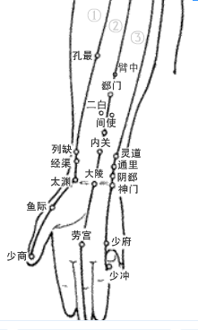 (3)咯血膏肓、膈俞、肺俞找脾、尺泽、孔最、太渊、鱼际太溪、足三里,可针可灸。(4)吐血 中脘、内关、足三里、郄门、膈俞、胃俞,指压、皮肤针轻刺激,也可加灸。