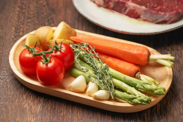 3、2个小土豆又嫩对半嫩切开煮熟,3根迷你胡萝卜去皮,3个串番茄洗净,5根芦笋切成长条状,3瓣大蒜去皮,2束百里香洗净备用,煎牛排怎么煎好吃又嫩。