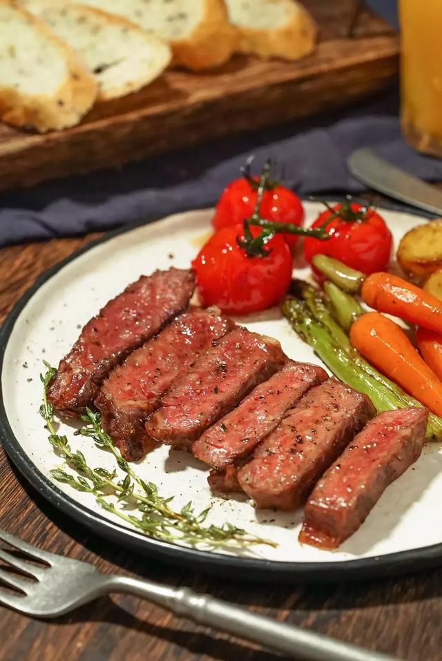 *静置片刻可以使牛排的汁水更好煎的渗透进肉里油铸铁,也是牛排鲜嫩多汁的关键分钟。