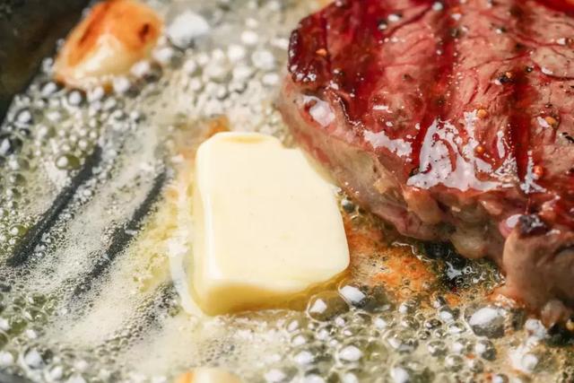 *放入黄油之后一定要转小火,否则又嫩很容易烧焦,使牛排颜色过深。