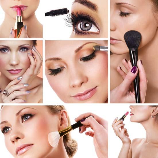 准备化妆品/工具:洁面乳,精华液,气垫BB霜,遮瑕笔,眉笔,眼影盘,睫毛夹,睫毛膏,眼线笔,腮红刷,腮红粉,日常色口红。