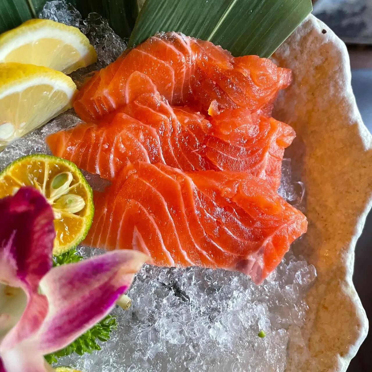 抹上薄薄的山葵末,蘸上一点酱油吃进去满嘴奶香,这的确是新鲜三文鱼最好的吃法,因为高端的食材往往只需要简单的烹饪技巧嘛,原汁原味,越是顶级的帝王鲑鱼,腥味就越少,甚至没有。