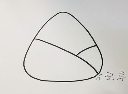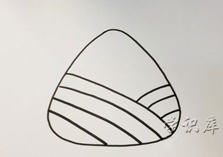 第1步:首先画出一个圆角的三角形,当做粽子的身体,要画的大小一致。