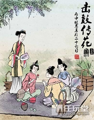 酒席助兴的节目繁多,但并不是只有男人可以玩,也有女眷宴席上流行的游戏,比如击鼓传花。击鼓传花又称“击鼓催花”,跟现代的“丢手绢”游戏有点相似,参与者围圈而坐,在旁人击鼓的同时相互传递花束,鼓声停止时持花的人算输,要罚酒。