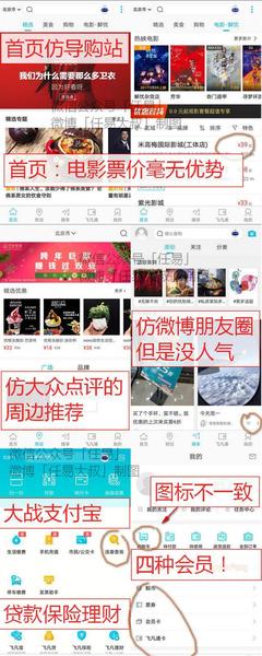 硬着头皮打开APP之后,我才明白万达电商非凡的野心——拳打美团点评,脚踢微博微信,剑指支付宝,制霸互联网。作为巨头旗下的公司,又坐拥万达广场的天然流量,万达飞凡把自己的战略设得远大一点没毛病,但是在战术执行中一口吃个胖子就是有毛病了。