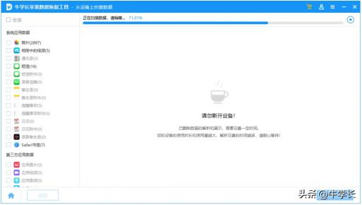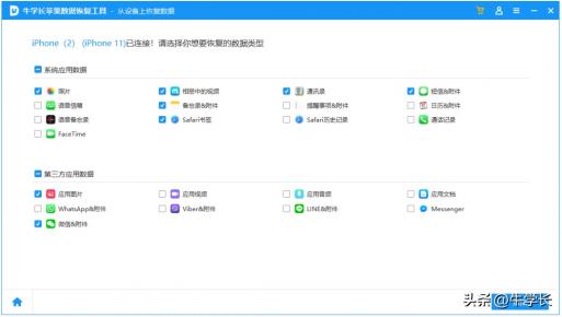如牛学长苹果数据恢复工具,不仅可以恢复误删的照片、通讯录,还支持视频、社交APP附件等 35 种以上的文件类型。
