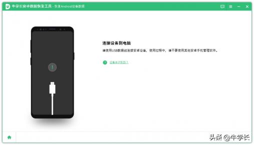 第1步:下载安装好工具,启动工具后,选择“恢复Android设备数据”,按照界面提示,使用数据线连接手机与电脑。