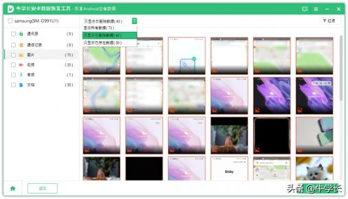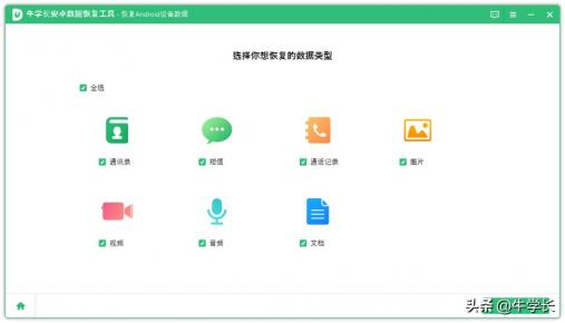 可试试牛学长安卓数据恢复工具,数据100%保证安全,支持一键恢复丢失或删除的图片、联系人、信息、视频、文档等相关重要数据。