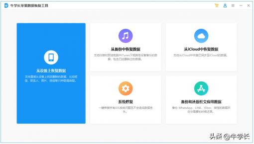 第1步:启动牛学长工具,因是恢复设备上的数据,选择点击“从设备上恢复数据”。
