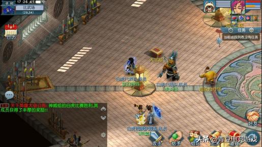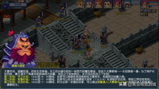 18门派闯关的时间在活动第一周周日当天的15:00到17:00期间,如果你是火爆大区,建议早上8点以前登号挂机,10点以后估计就要挤号了。门派闯关基本没什么难度,和以前12门派时的护法实力有明显下降,当年12门派时的狮驼岭护法,对于一般玩家来说简直就是梦魇,怪物一圈鹰击基本不死也是残血了,不过现在没什么威胁了。门派闯关也应该是周末活动最火爆的活动了,没有之一。门派闯关的奖励相信大家都能看得到,宝石、珍珠之类的物品根本上不了电视,上电视的基本都是五宝、高兽决之类的。而且爆率还是相当的高呢,作为周末活动的NO.1是毫无悬念的。