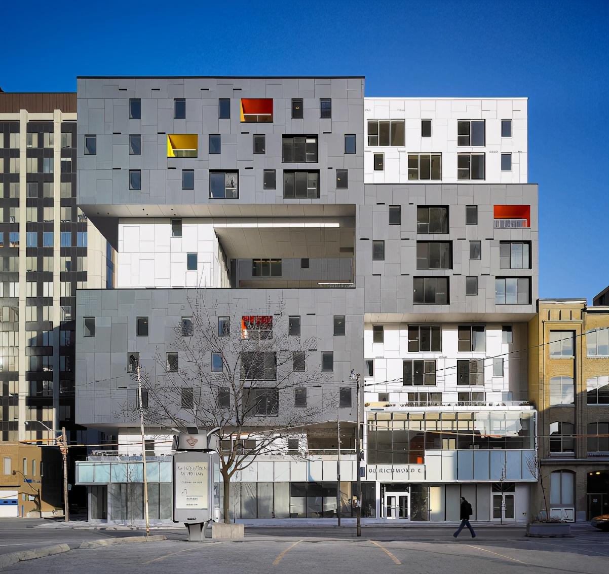 2011年,列治文街60号迎来了第一批业主,这栋色彩缤纷、相互交错的建筑,是多伦多社区住房公司20年来的第一个新合作社,是城市住宅的典范。居民经营的餐厅和厨房学院为街道增添了活力,同时也为居民提供了收入来源,而中央庭院则创造了一个友好的绿色空间。根据负责人Stephen Teeple介绍,设计的动力来自于公司对日常事物的兴趣。在60 Richmond,日常生活就是一张富有表现力的设计画布。随着十年的发展,Teeple的社会住房随着Alexandra Park的建筑而扩大,它是具有社区感和建筑风格的经济适用房。在2020年代,我们将需要更多这样的房屋。