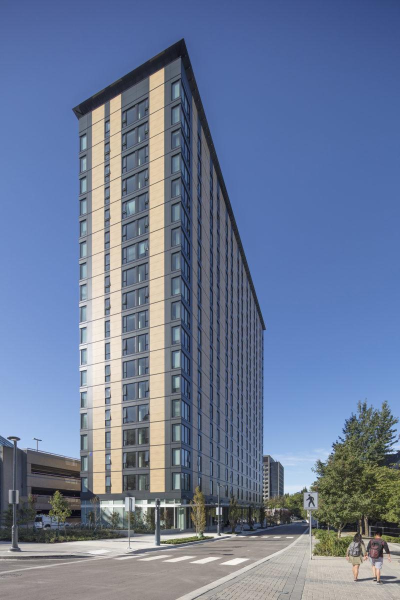 阿克顿·奥斯特里建筑事务所的布洛克下议院高木屋在2017年竣工时,获得了世界上最高的木材塔建筑称号。建筑结构高53米,将木材、钢材和混凝土结合在一起,可减少679公吨温室气体排放,获得LEED金级认证,其垂直条形预制的外墙仅用了66天就建成了,为全国各地的大规模木材混合结构浪潮奠定了基础。