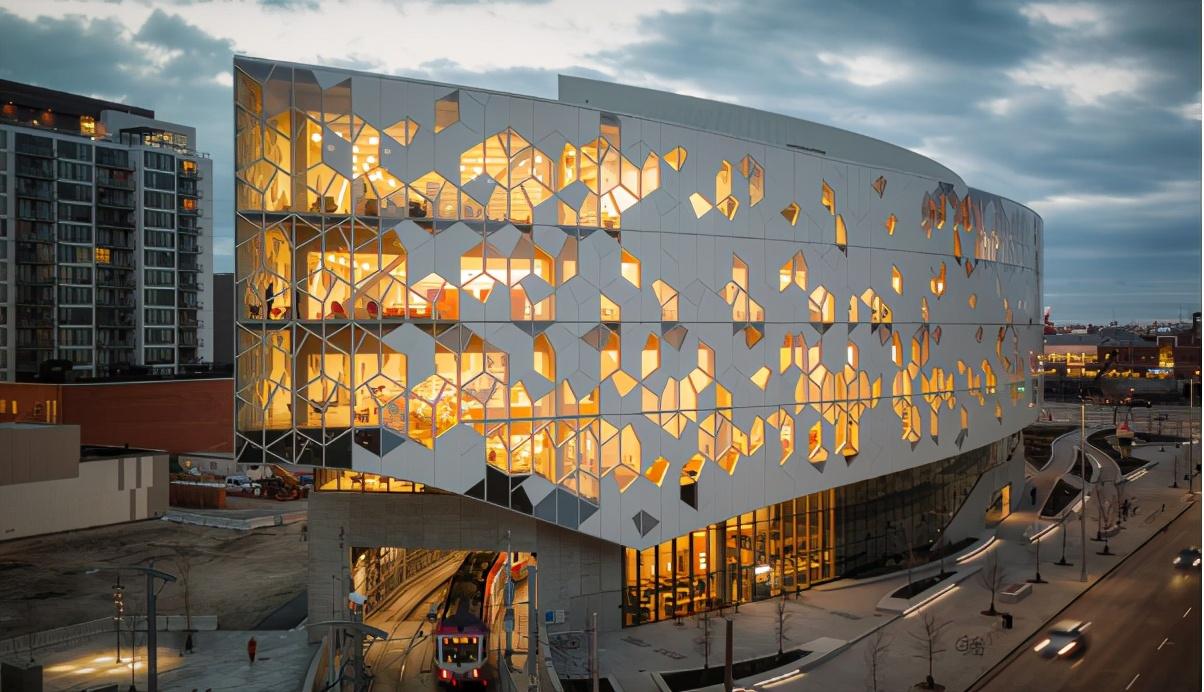 这座位于轻轨站上方的三角形建筑,位于半月形的弧形地块上,围绕着一系列木制拱门上升,然后融入上方标志性的六边形玻璃建筑中。在图书馆内部,还包括数字公共空间、表演厅和本土艺术展示厅。卡尔加里中央图书馆既具有强烈的地方性外观和视觉,又具有普遍性。在这个意义上,它不仅是图书馆的典范,也是任何类型的公共空间的典范。