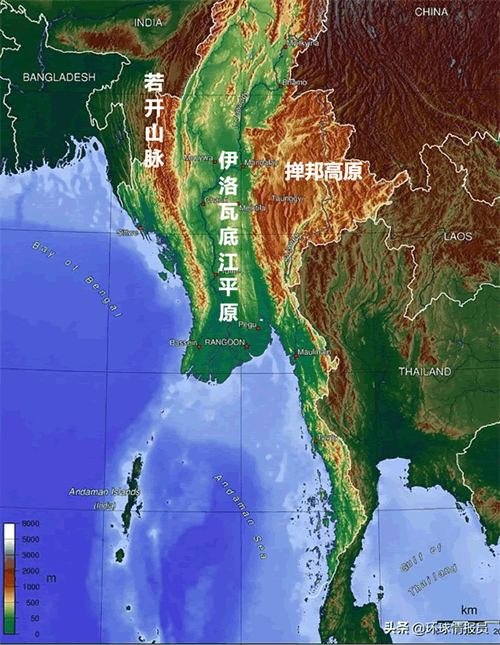 ▲缅甸最精华的部分在于中间的伊洛瓦底江中下游平原
