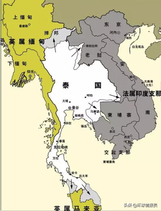 英法两国在中南半岛激烈争夺,但是又不想爆发战争,而泰国正好位于英法殖民地之间,便顺理成章地成为了缓冲地带。