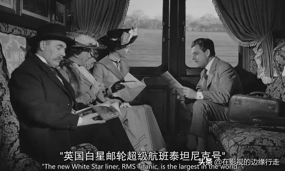 影片伊始的火车上,两对夫妇对报纸上关于“泰坦尼克号”的报道起了争论。