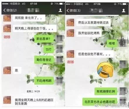 下午6时19分,老友相见,谢雕为周凯旋拍照,上传到高中的舍友群。照片中的谢雕,被夕日同窗评价为“成熟男人”“商务风”。