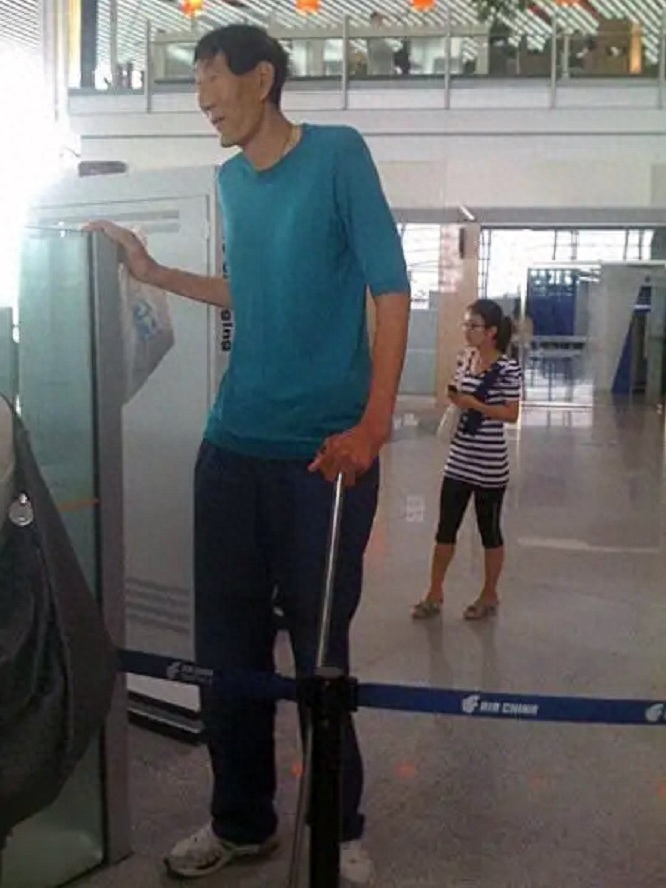 普通人大都是这样,但鲍喜顺却是从15岁开始出现身高猛烈增长,一直长到了20多岁,身高最终定格在2.36米上。