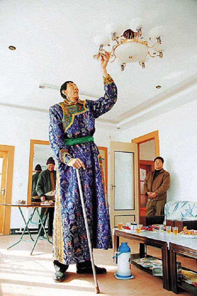 以他妻子1.68米的身高,也只是到他的腰部。鲍喜顺站起来的时候,如同是一尊天神,哪怕是坐下来,也有两米高。但是这样的身高不但没有给他带来喜悦,反而给他带来了很大的困扰。