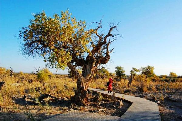 胡杨,它是在塔里木荒漠大地上唯一能够成林生长的树种,维吾尔语称之为“托克拉克”,寓意为最美丽的树。