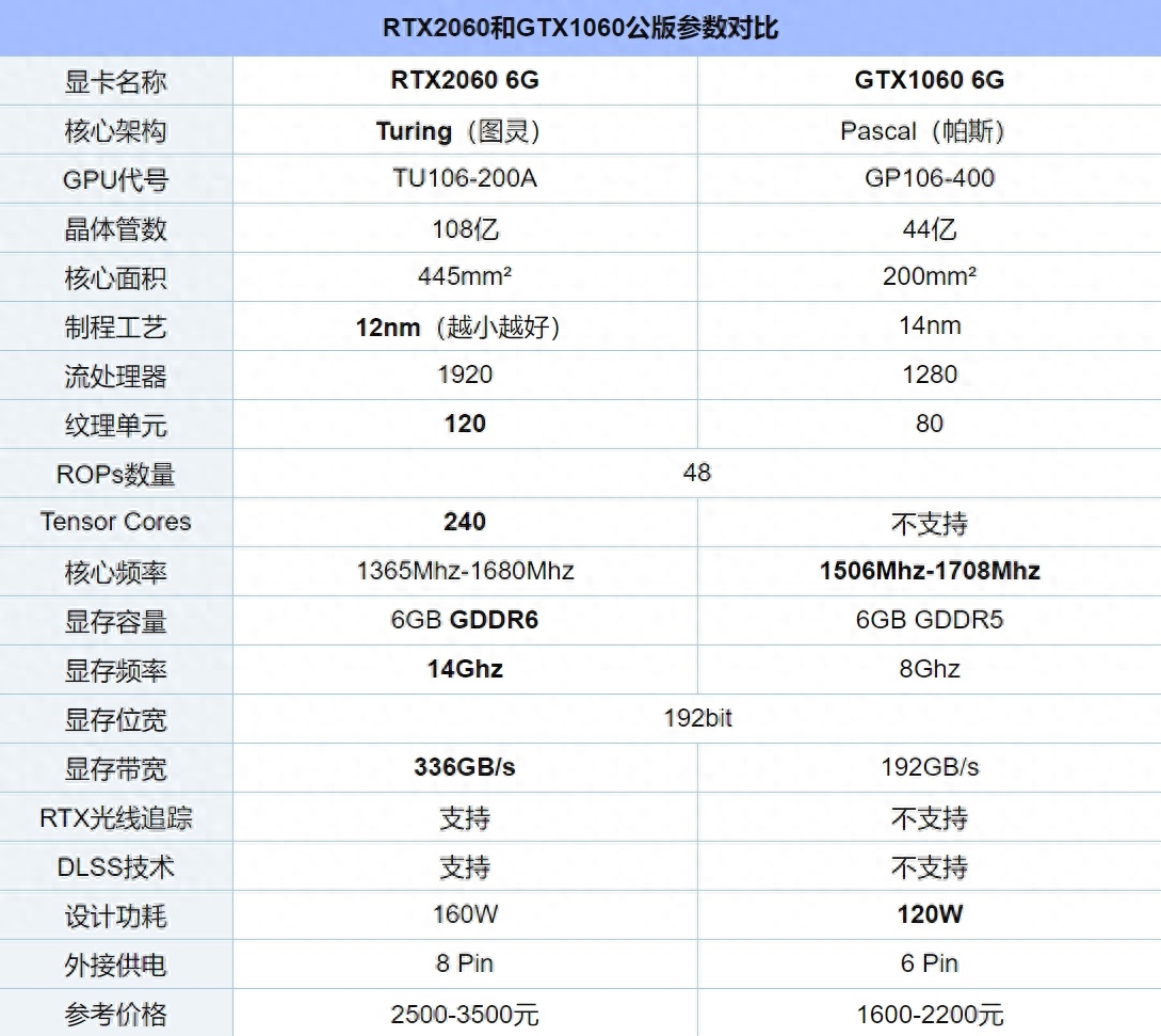 一、RTX2060和GTX1060参数对比