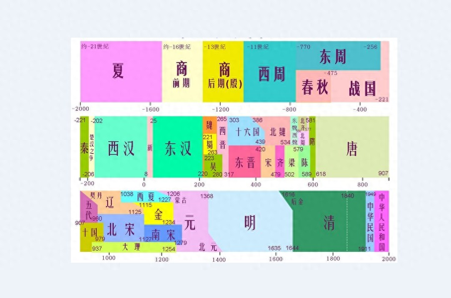 而中国从古至今历朝历代的正确排列顺序是:夏、商、周[西周、东周(春秋、战国)]、秦、汉(西汉、东汉)、三国时期(魏、蜀、吴)、晋(西晋、东晋)、南北朝[南朝(宋、齐、梁、陈)、北朝(北魏、东魏、西魏、北齐、北周)]、隋、唐、五代(后梁、后唐、后晋、后汉、后周)、十国[前蜀、后蜀、吴、南唐、吴越、闽、楚、南汉、南平(荆南)、北汉]、宋(北宋、南宋)、辽、西夏、金、元、明、清、中华民国、中华人民共和国。