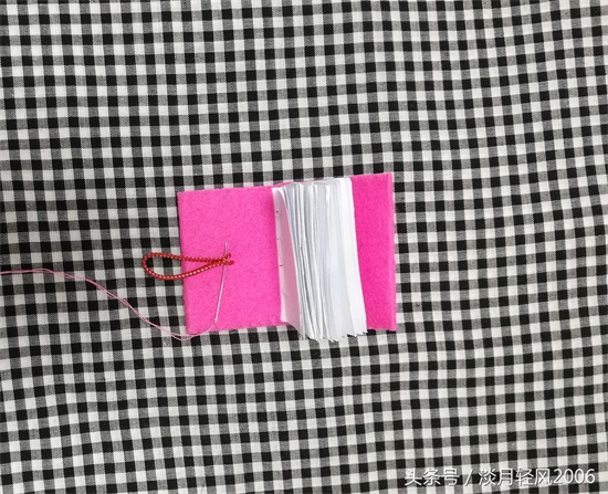 一面用不织布往里折,包住一张或两张纸,沿边缘将两片不织布缝合起来,如下图所示