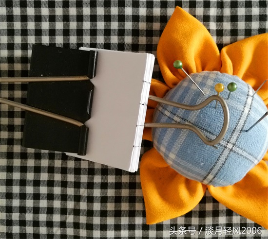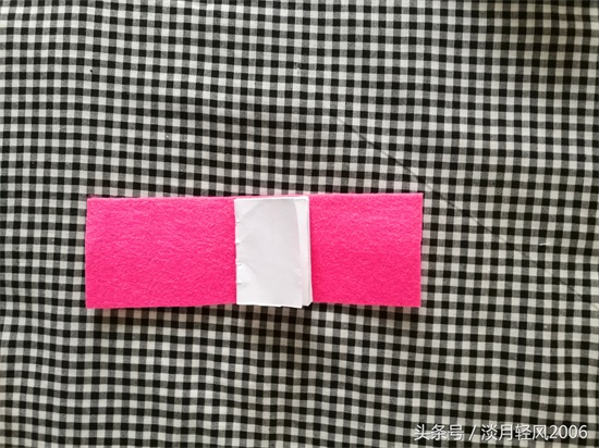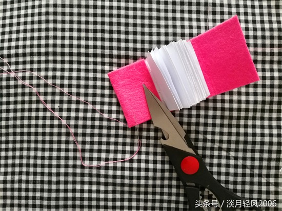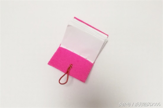把不织布剪成小条,宽度与小本的高度相同,长度是小本宽度的四倍,把小本放到不织布中央