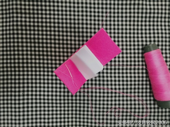 另一边不织布也用相同的方法折到里边,两片边缘缝合,见下图