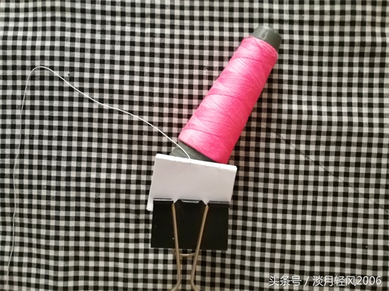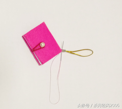 一张A4纸、一小条不织布、一个小珠子或小扣子、一小段弹力线、一个小挂绳;针、线、剪刀。