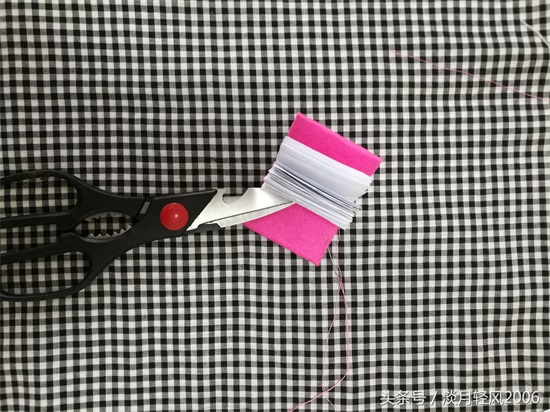 四张纸条都按照这个方法剪成小纸片,把所有小纸片对齐叠放在一起,用夹子固定
