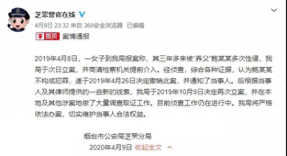 综合媒体报道,被害人自称,从2016年起,当时刚满14周岁的她就被“养父”鲍毓明性侵、虐待,被迫拍下裸照和视频,不仅手机QQ受到监视,连上个厕所都不能关门……