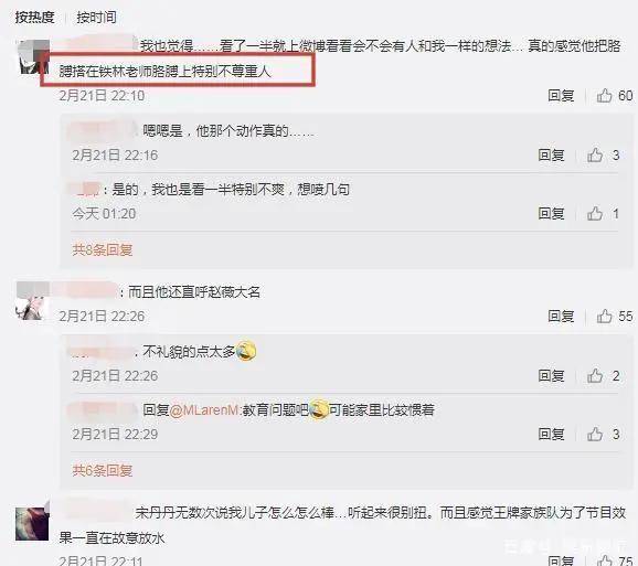 巴图在节目中的一些行为也被网友吐槽。他不仅直呼赵薇大名,还将自己的胳膊肘搭在长辈张铁林的肩上,被许多网友吐槽不尊重前辈。