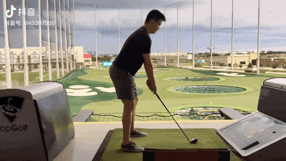 视频中,打高尔夫球的他身材健硕,挥杆的动作也显得很专业。