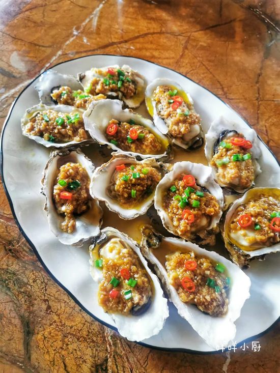 说实话这一大盘的蒜蓉生蚝真是太香太诱人了,口感很嫩很好吃,一点不比外面饭店里的差。鲜美营养的生蚝你喜欢吗?你喜欢这样蒸着吃吗?其实生活的做法挺简单的,只是前期的打理要用点儿小方法,只要做过的人都觉得不难,挺好上手的。而且在家做比起去外面吃实惠太多了,很值得。好了,今天的蒜蓉蒸生蚝就分享到这里了,现在的生蚝正肥美,大家赶紧吃起来吧。