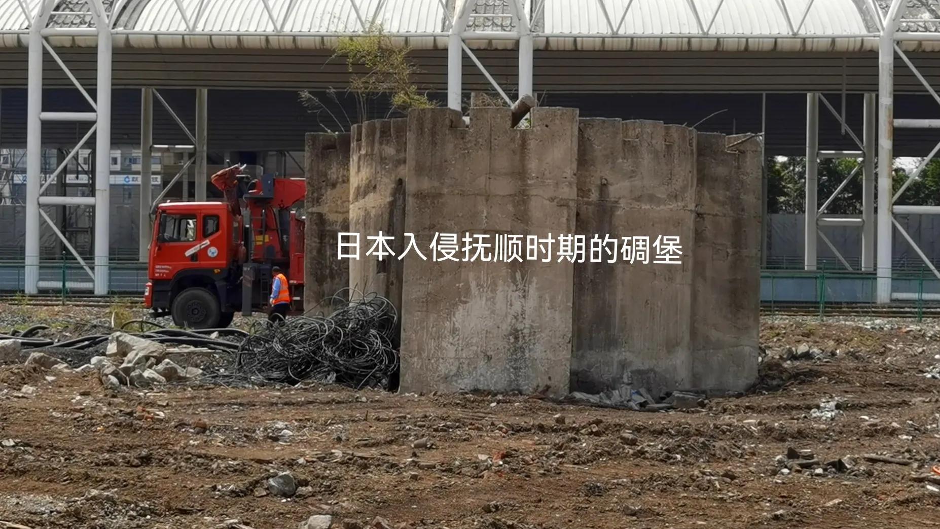 在沈白客运专线(沈白高铁)抚顺北站建设现场,发现了一个碉堡,位于抚顺北站站台北面百米开外,该地原属于抚顺北站的货场。小时候,我家在北关附近,经常到北站货场周边玩耍,没有发现有碉堡。这次修建的沈白客运专线,从沈阳北站出发,经抚顺市区、新宾县城,进入吉林,终点是吉林白河,从而摘掉了抚顺不通高铁和新宾县城不通铁路的帽子,改写了上述两地的历史。