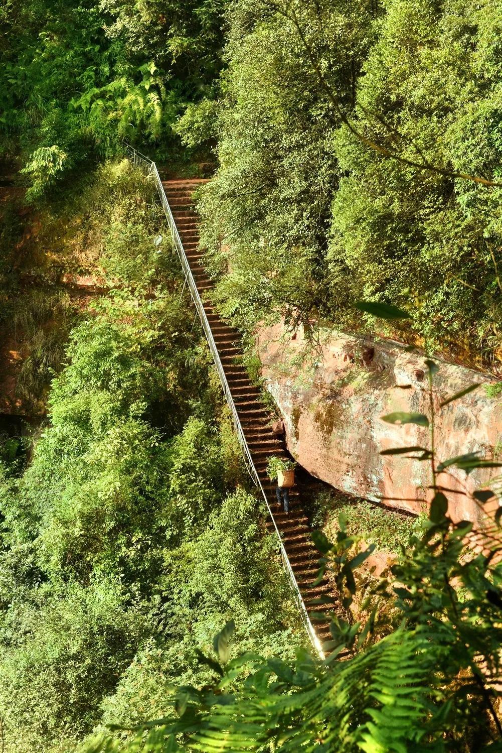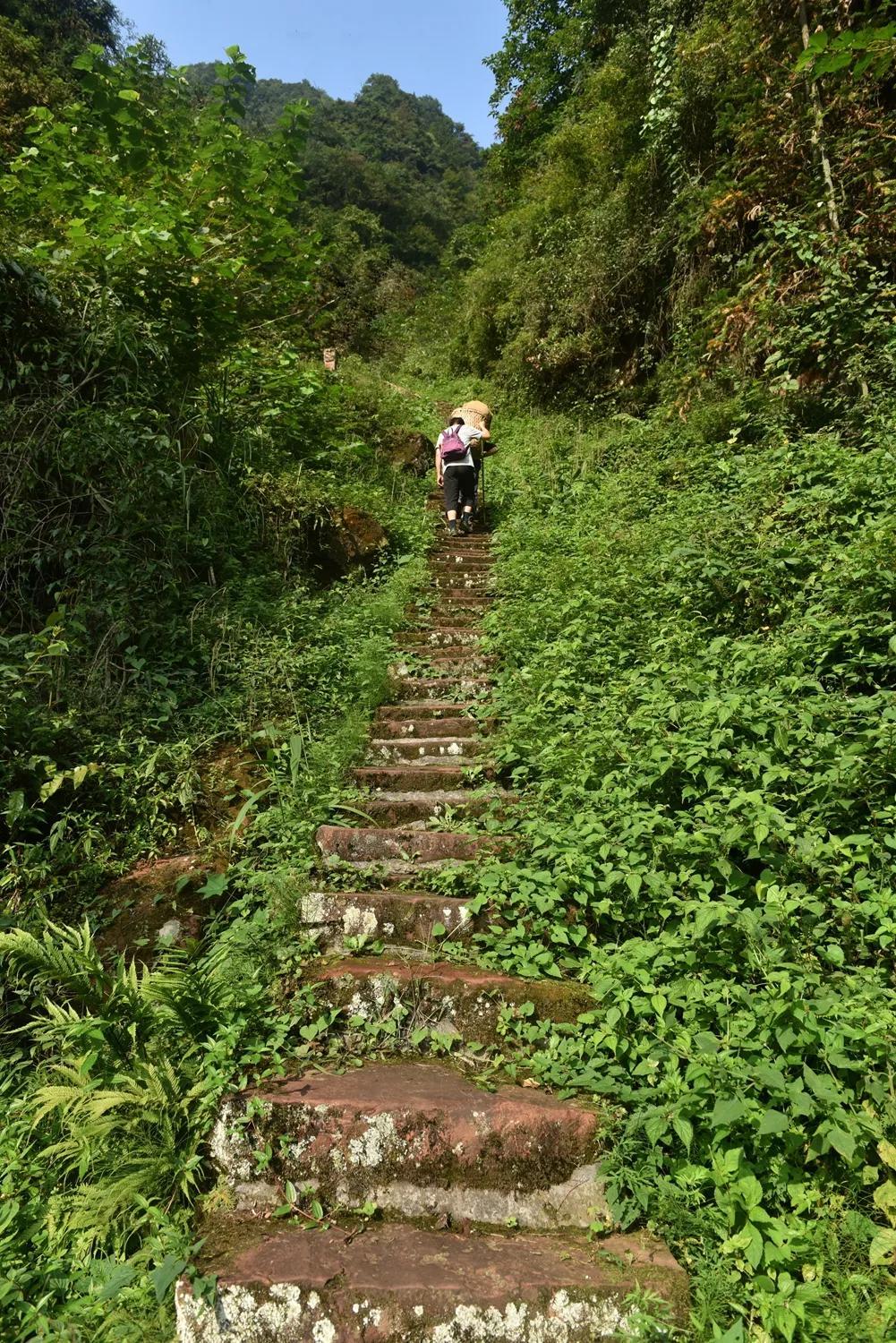 进山只有一条石板小路。经过手爬岩、仰天坡、千丈崖,攀登完数千级台阶,历时约两个小时,出一通大汗,你才有可能登上山顶。