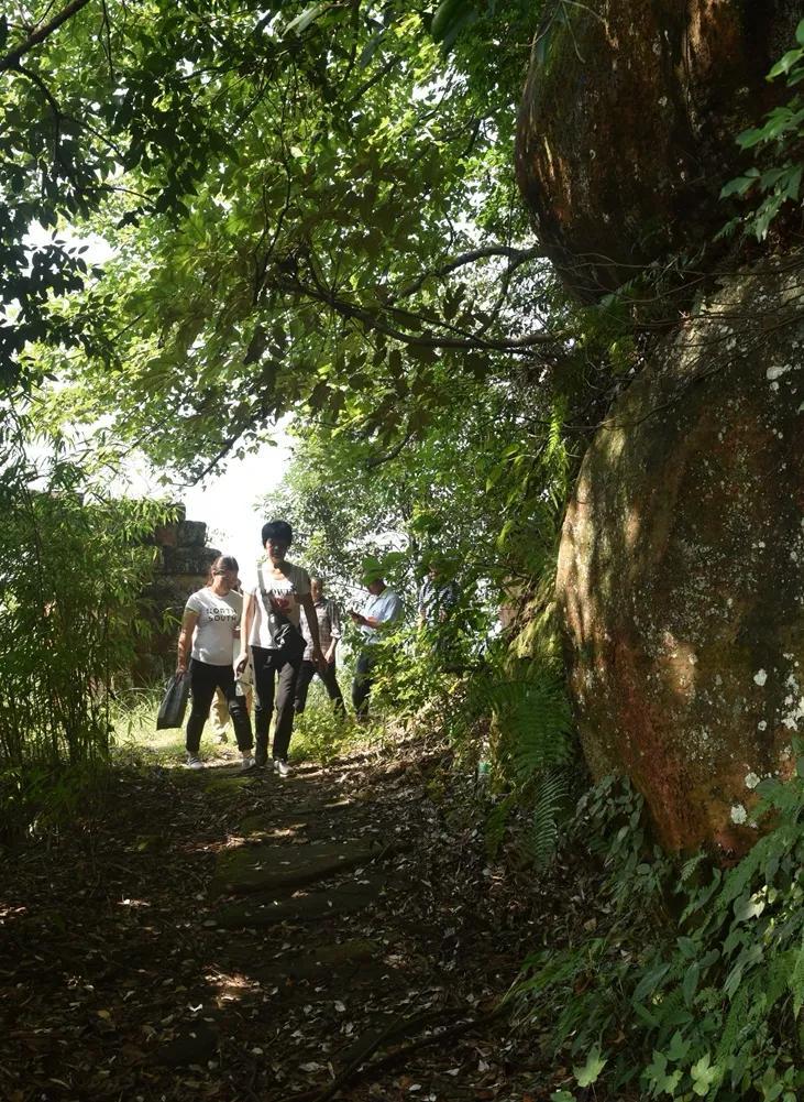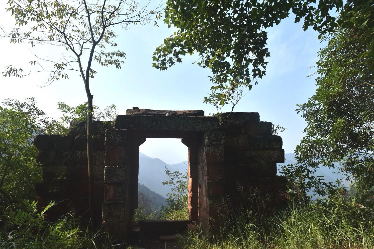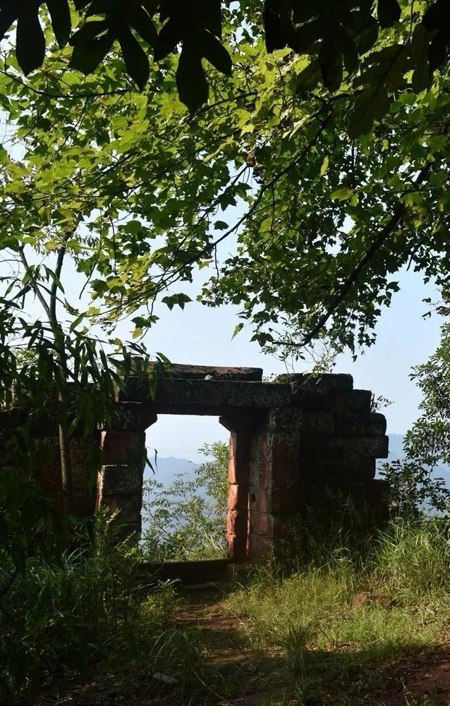 登上山顶,你会看到一道红石寨门临空高峙,万倾林海绵延起伏。红石山寨建于何年代没有准确记载,寨门后侧山崖上留下了一行清晰字迹:乾隆四十二年(公元1777年)。乾隆四十二年,是建成了山寨,还是维修了山寨,如今,谁也说不清,谁也道不明。