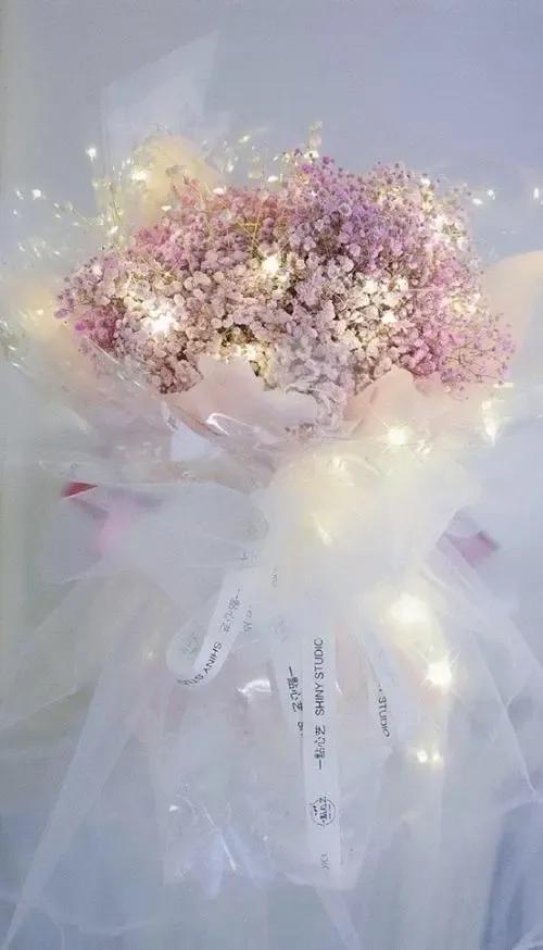 白色的满天星象征的花语含义是“浪漫、纯洁”。白色是纯净之色,本身满天星花朵小巧精致,配合白色的渲染,给人一种不沾尘染的文艺气息,给人浪漫的文艺情怀。既能够作为表达爱情的配花,也能够传递仰慕之情。