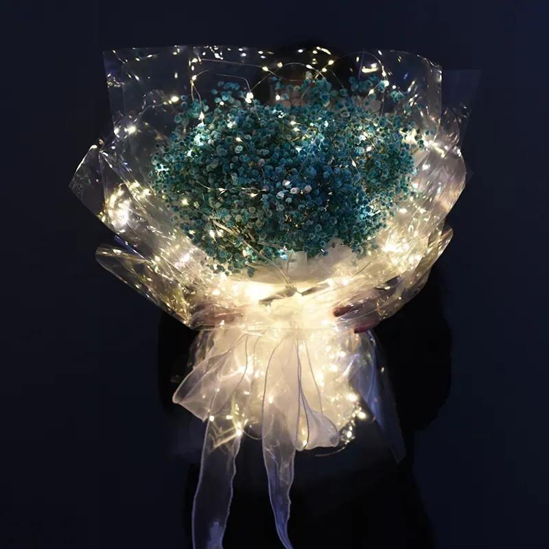 蓝色满天星象征的花语含义是青春和温柔,多用来表达学生时代的友情,以及同窗多年或一起工作学习的难忘之情。若送给多年好友,则代表着思念之意。另外,蓝色满天星还能够表示“真心喜欢你”的花语含义。