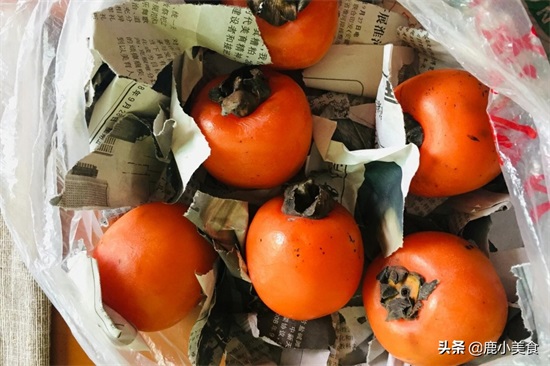 原理:成熟水果在摆放的时候会释放大量乙烯,而还没有成熟的柿子,吸收了成熟水果所释放的乙烯后,就能够快速催熟,此方法最干净、最靠谱。