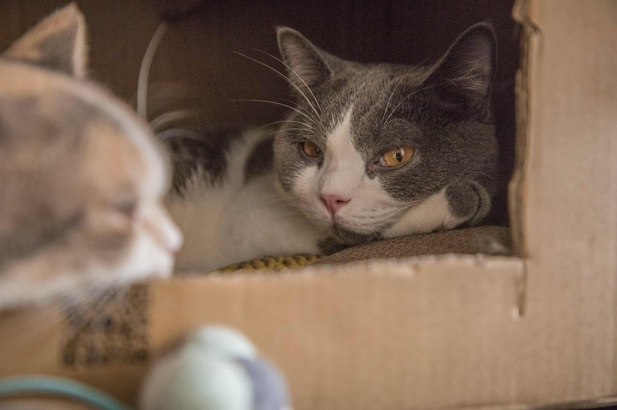 更神奇的是,这个动作似乎还能让喵咪感到放松。一些被夹的喵星人,甚至还发出了愉悦的咕噜咕噜声。