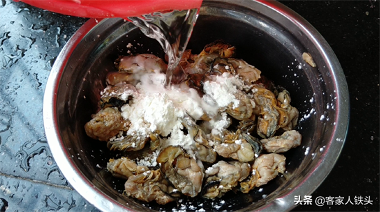 第一步:准备一把蚝干,提前用水浸泡好,冲洗一遍,然后加上苏打粉,加上温水再浸泡一下。