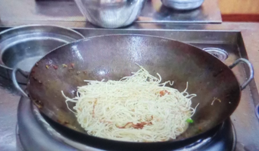 2.取二细的鲜面条500克,平铺到蒸屉里,入蒸笼蒸制20分钟,蒸制半熟然后喷上少量酱油上色。
