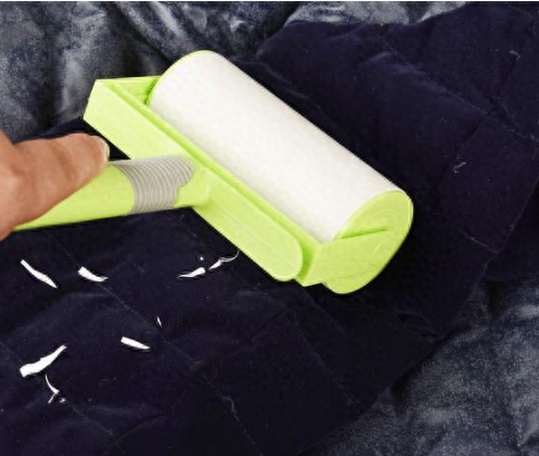 大的超市里面应该会有卖的,胶皮的那种,可以反复使用的。黑衣铺平,滚刷按一个方法滚动,一竖竖的滚动,使用起来很方便。