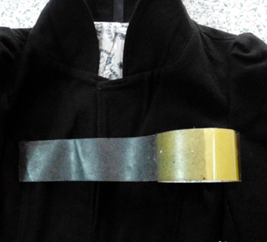 把黑衣铺平,用胶带在上面轻轻的压一下,毛毛都会沾到胶带上面,效果很快速,明显。
