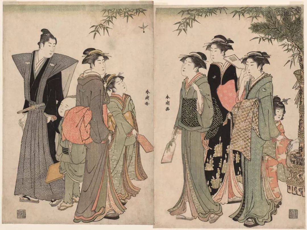 新年日本女性在玩毽子板球,正月賑,1785年