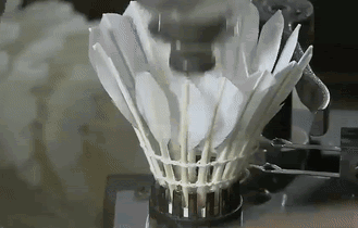 一些羽毛球的16根羽毛的倾斜角度会被乔得略有差别,为的是更好地平衡羽毛球在气流中的运动。