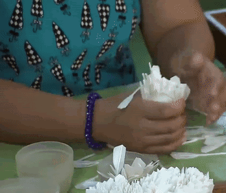 羽毛分类好了以后,就可以制造羽毛球了。